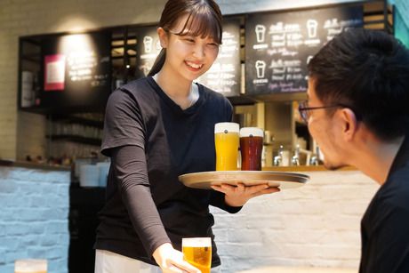 【月収25万円以上】丸の内のビアテラス&カフェ◆未経験歓迎◆月8~9日休・賄い有・残業代全額支給
