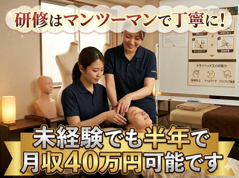 仕事内容 ✨学芸大駅徒歩1分/オープニング募集✨ 全力ドライヘッドスパでは、お客様一人ひとりのお悩みに合わせた “睡眠特化型ドライヘッドスパ”を提供しています。 ただ気持ち良くなっていただくだけではなく、 ✅睡眠改善 ✅脳疲労ケア ✅ストレス緩和 ✅自律神経ケア ✅疲労回復 ✅リラクゼーション などを目的とした、高級ドライヘッドスパ専門店です。 ■仕事内容:未経験から「一生モノの技術」を身につけられる! ドライヘッドスパ専門店にて、お客様への施術と店舗運営サポートをお任せします。 「力仕事なし」「髪に触れない」ため、未経験からでも安心して始められるリラクゼーションのお仕事です。 ■ 具体的な業務ステップ ✅カウンセリング お客様の「眠りが浅い」「目が疲れる」「首肩が重い」といったお悩みをヒアリングします。 ✅施術(ドライヘッドスパ) 頭皮を優しく揉みほぐし、深いリラクゼーションへと導きます。水やオイルを使わないので、手荒れの心配もありません。 ✅お見送り・アフターケア 施術後のお飲み物の提供や、簡単なストレッチのアドバイスを行います。 ■ このお仕事の「ここが安心!」ポイント 未経験スタート大歓迎! 研修制度が非常に充実しています。 手の添え方、力の入れ方など、イチから丁寧に教えるので、不器用さんでもプロの技術が身につきます。 さらに指名制度もあり、一人当たりの対応につきインセンティブも支給します。 ✅体力的な負担が少ない 力任せに揉むのではなく、手の重みや角度を利用する特殊な手法です。1日中立ちっぱなしで腰が痛くなる……といったこともありません。 ✅髪や服を濡らさない お客様は服を着たまま施術を受けるため、準備や後片付けが非常にシンプル。美容業界の経験がない方でもスムーズに覚えられます。 もちろん美容師資格も不要です。 エステティシャン、リラクゼーション、セラピスト経験者は 接客経験を活かせます。 未経験スタートの方がほとんどですので、安心して始められるように 入社後の研修に力を入れています。 ✅研修内容 ・ドライヘッドスパ技術 ・接客(お客様とのコミュニケーション) ・カウンセリング ・指名獲得 ・美容知識 ・睡眠知識 ✅こんな方にオススメです ✔ エステティシャン ✔ セラピスト ✔ リラクゼーションスタッフ ✔ 美容部員 ✔ 美容好きな方 ✔ 高収入を目指したい方 ✔ 人を癒す仕事がしたい方 全力ヘッドスパの特徴 ✔ ドライヘッドスパ専門店 ✔ 高収入 ✔ 未経験OK ✔ オープニングスタッフ募集 ✔ 指名インセンティブあり ✔ 完全個室 ✔ 高級美容サロン ✔ リラクゼーション ✔ 睡眠特化 ✔ 美容好き歓迎 ✔ 20代〜30代女性活躍中 「美容の仕事は好き」 でも、もっと稼ぎたい。 そんな女性に人気の、 高級ドライヘッドスパ専門店です。 ドライヘッドスパセラピスト/ヘッドスパニスト/美容サロンスタッフ