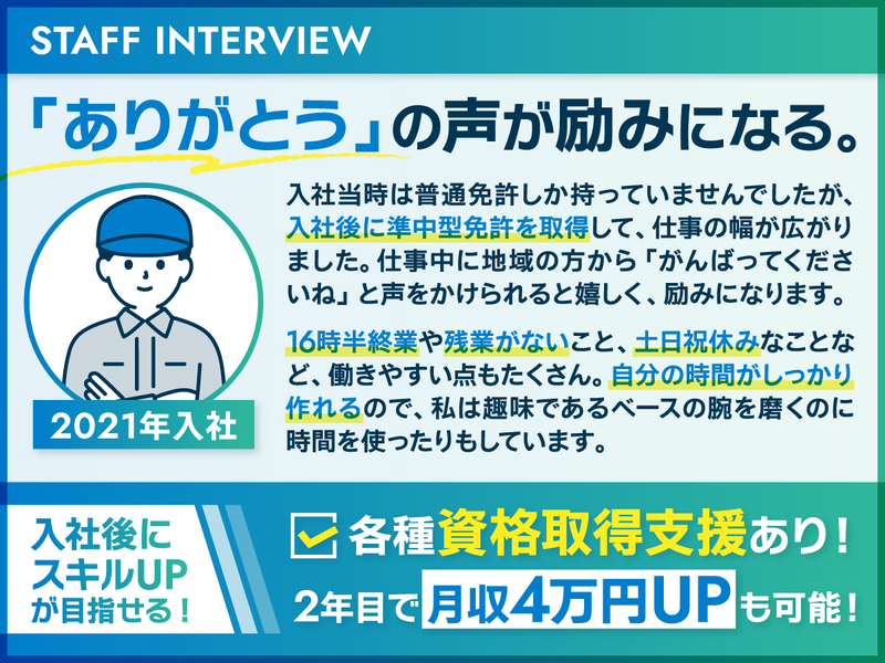 経験不問!普免あればOK|ストレスフリーで定着率高!環境ヨシ