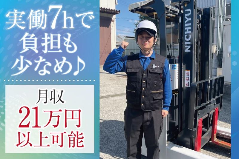 仕事内容 【仕事内容】 カウンター式フォークリフトを使用した 荷受け・出荷作業を中心とした構内業務です。 トラックからの荷下ろしや 部品整理などの構内作業もあり、 体を動かしながらバランスよく働けるお仕事です。 ※作業の割合は、リフト作業が2割/梱包などの軽作業が8割です。 リフト乗務だけでなく、適度に体を動かす作業もあるため、 メリハリをつけて働ける環境です。 ■具体的には ・リーチ式フォークリフトでの荷受け作業 ・出荷準備 ・部品の整理 ・梱包・計量作業 【 おすすめポイント 】 ✅ 日勤のみで生活リズム安定 9:00~17:00の固定勤務。 実働7時間で無理なく働けます。 夜勤がなく、長く続けやすい働き方です。 ✅ 土日祝休み+長期休暇あり GW・夏季・年末年始などの長期休暇あり。 プライベートの予定も立てやすい環境です。 ✅ 休憩もしっかり確保 お昼休憩とは別に10分のプチ休憩あり。 立ちっぱなし・動きっぱなしにならない環境です。 ✅ 通勤しやすい立地 車・自転車・バイク通勤OK(原付・中型バイク可) ✅ お弁当が大人気! ・栄養重視の手作りお弁当:1食500円 ・あたたかいお弁当が大好評♪ ✅ 落ち着いた職場環境 同年代のスタッフも多く、 穏やかな雰囲気でコツコツ働ける環境です。