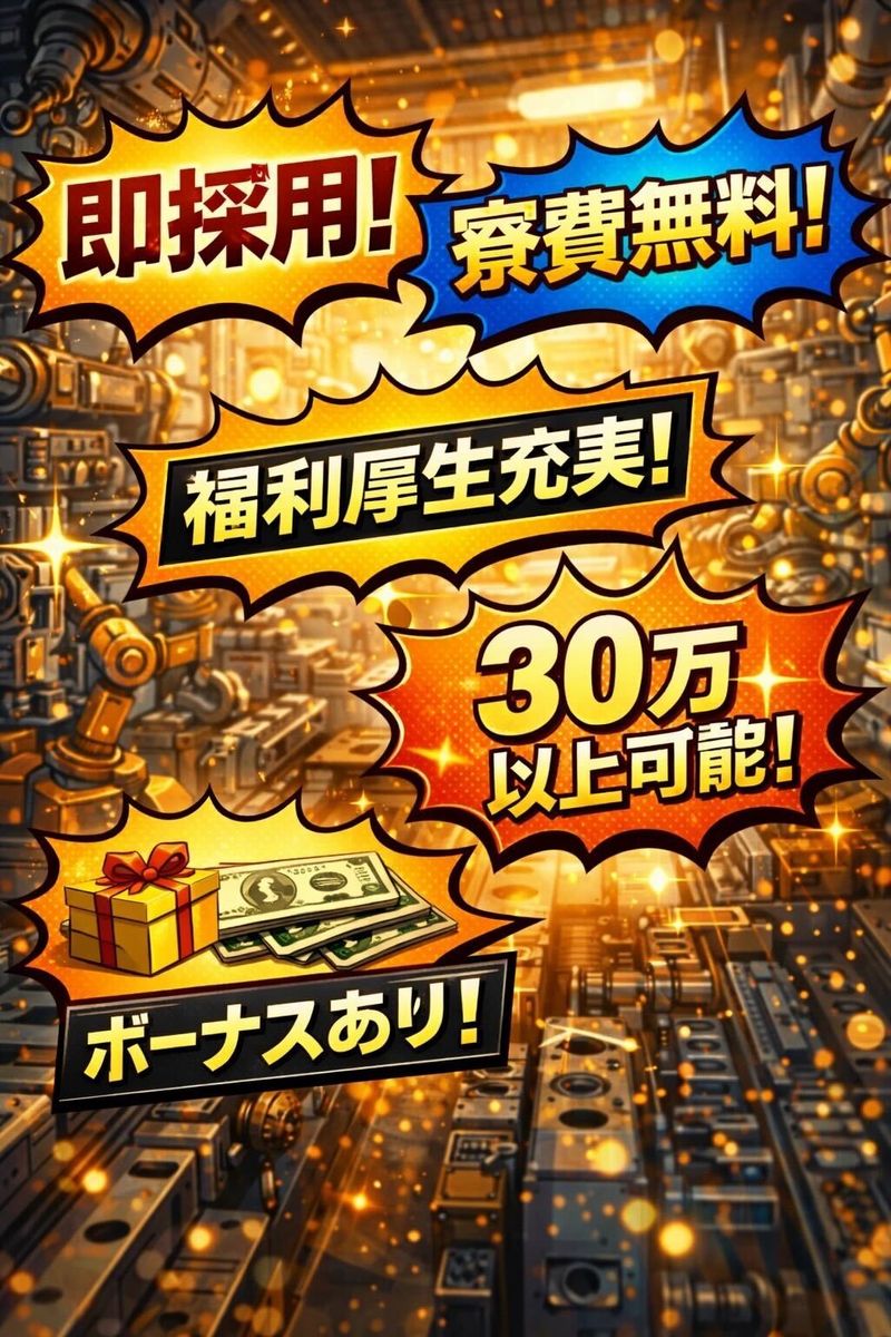 アピールポイント: 週払い・日払い制度あり! 人気の工場内作業のお仕事です。 身近な製品を扱うので仕事のイメージもしやすく安心! 空調完備の清潔な職場で快適に働けます。 寮・社宅も完備しているので遠方の方もぜひご応募ください