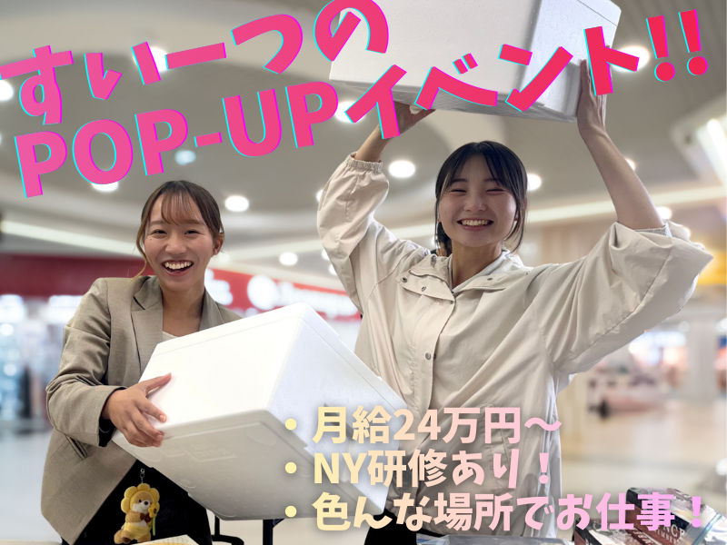 仕事内容: この求人のポイント♪ +...・...*...・...*...・...*...・...+ ▪ 月給40万円可能! ▪ 年間休日120日以上! ▪ 接客や販売経験を活かせる! ▪ NYや韓国のスイーツリサーチに行けちゃうかも!? +...・...*...・...*...・...*...・...+ 【TRUNKとは?】 私たちはFace to Faceマーケティングで 良いものを直接お客様に届ける「人と人の架け橋」になりたいと考えています! 「 おやつで世界をおもしろく。 」 お客様とメーカー様が離れていることで起こる一方通行のコミュニケーションを解消するため、 質の良いおやつを!直接お客様に届けます! お客様の声を直に聞きながら、 こんな紹介方法がいいかも!や次の商品はこんなものがあるといい!など アイディアをどんどん発信して形にするのもやりがいの1つです! 今回の募集は店舗運営という形ではないので、 残業時間はほぼなし! ライフワークバランスも大切にしていきたいと考えています! また、 「 実演できるおやつ体験 」 「 店舗開発 」 「 キッチンカー事業展開 」 など今後は様々なプロジェクトが進行していきます。 わくわくする環境の中で楽しみながら 組織の中核メンバー、並びにマネージャー候補を探しており、 まず初めにPRの売り子さんとして活躍してくださる方を募集します! 仕事でつかれた時に。 頑張った自分のご褒美に。 こどもが安心して食べれるおやつ時間に。 大切なひとへの贈り物に。 こどもの頃に感じたあのわくわくや楽しい時間を一緒に広げましょう。 【昨年の実施イベント】 ・4月お花見スイーツ探し ・6月NY研修 最新スイーツリサーチ ・7月冷凍スイーツ仕入れ ・9月お芋おやつを探す旅 ・10月岡山おやつ工場見学 ・11月韓国研修最新スイーツリサーチ