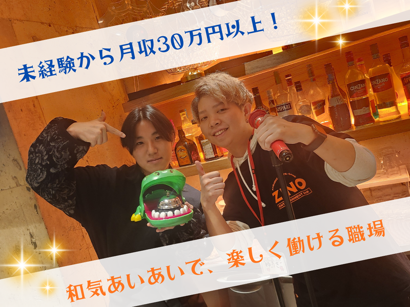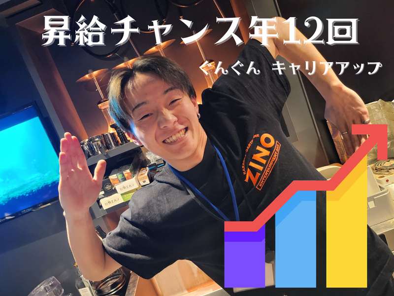 仕事内容 【飲み会の盛り上げ役】をそのまま仕事に! ✅エンタメBAR_ZINOで、お客様を盛り上げながら自分も楽しめるお仕事。 ✅「夜のエンタメはZINO」を目指して、現在は57店舗を運営中! ✅全国150店舗を目指して、一緒に新しいエンタメを創りませんか? - <主な業務内容> ・接客対応 ・開店準備・閉店作業 ・ドリンク・フード・備品などの仕入・発注業務 ・エンタメに関わる業務など - <お店の特徴> *1.エンタメがいっぱい!* カラオケやボードゲーム、ダーツにシーシャ など多種多様! *2、ノリのいい仲間と一緒に働ける!* 仕事前後に店内のカラオケやダーツで 遊んだり、仕事終わりに飲みに行ったり。 もちろん仕事中もエンタメに振り切った 仲間たちと楽しく仕事ができる! 年に数回、全社員が集まる表彰式もあり、 仲間同士で飲む場も提供! *3、ありのままのあなたのまま、働ける!* 見た目自由、髪型自由、髪色自由、ピアスOK、 ネイルOK! 様々な自由があるため、仕事だからと自分を 偽る必要がありません! *4、最短1ヶ月で昇進!* 1ヶ月に1回、キャリアアップのチャンス! 一般キャストからスタートして、数ヶ月で マネージャーに! 昇進したら、その分だけ昇給も!