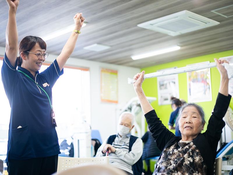 職場環境 「機能回復」だけでなく「心の元気」も提供する施設。スタッフの笑い声が利用者様のパワーになります。経験や年齢に関係なく、お互いを尊重し、「お節介」なほど助け合う温かいカルチャーが根付いています。