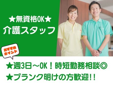 仕事内容 \ここがポイント/ ★週3日~OK!無理なくスタート♪ ★無資格・未経験でも大歓迎◎ ★男女問わず幅広い年代が活躍中! *・。・。*・。・。*・。・。* <仕事内容> \無資格からはじめる介護サポート♪/ 特別養護老人ホームでのお仕事です。 ・食事や入浴などの生活介助 ・見守りや移動時の付き添い ・お部屋の清掃やシーツ交換 ・介護記録の簡単な入力作業 利用者さまの「ありがとう」が嬉しい やりがいあるお仕事です♪ スタッフ同士で支え合う環境なので、 未経験でも安心して働けます◎ \働き方の相談もOK/ ・週3日からの勤務でOK ・「午前だけ」「夕方まで」も相談可 ・早出(7:00~)や遅出(~22:00)も選べます 子育て中やブランクのある方も 自分のペースで働ける職場です。 \あなたの笑顔が活かせる職場♪/ 資格よりも「やさしさ」が大切なお仕事です。 人の温かさに触れながら、 一緒に成長していきませんか? *・。・。*・。・。*・。・。*