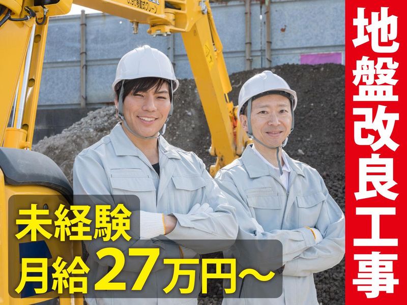 仕事内容 ⿻⿻⿻⿻⿻⿻⿻⿻⿻⿻⿻⿻⿻⿻⿻⿻⿻⿻ 東京を代表する電波塔や鉄道など 大規模案件に関われる! 建物が完成したときの達成感は格別です。 ⿻⿻⿻⿻⿻⿻⿻⿻⿻⿻⿻⿻⿻⿻⿻⿻⿻⿻ 【仕事内容】 商業施設・駅・鉄道・トンネルなど、 大きな建物を“足元から支える” 地盤改良工事を行います。 『地盤改良工事とは?』  ̄ ̄ ̄ ̄ ̄ ̄ ̄ ̄ ̄ ̄ ̄ 建物を建てる前や、建物の安全性を高める ために、やわらかい地面を丈夫に固め、 沈まないようにする工事です。 地盤が弱いままだと、 ・建物が傾く ・ひび割れが起きる ・最悪の場合、倒壊の危険も そうならないように、見えない部分で 建物の安全を守るのが私たちの仕事です。 【具体的な作業内容】 ▸地面を掘る、整える ▸専用の機械を使って地盤を固める ▸資材の運搬、準備、片付け ▸作業後の清掃 など ※最初は道具の名前を覚える・材料を運ぶ など、簡単な作業からスタートします。 ※先輩が必ずそばにいるので、 未経験の方もご安心ください。 ※黙々作業が中心。人目を気にせず働ける! 【現場に関して】 ☑勤務エリアは関東一円 ☑1現場2週間~3ヶ月程度 (毎日違う現場に行くことは少なめ) ☑現場周辺の地元情報に詳しくなることも ☑年に1回くらい、全国への出張あり 「ちょっとした旅行気分で楽しい」 という声もあります。 ☞寮住まいの方/寮から現場へ直行直帰 ☞寮以外の方/近郊で集合し、車で現場へ ※資材準備や整理がある場合は原木中山の 倉庫で作業することもあります。
