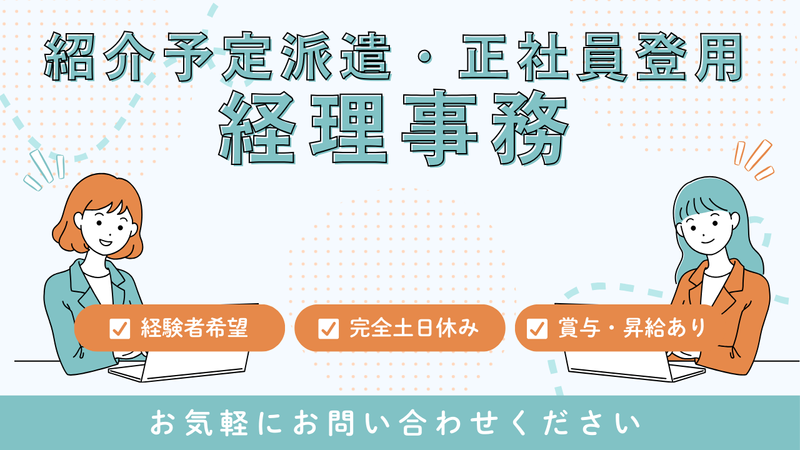 【紹介予定派遣・正社員登用】経験者希望!土日祝休み・残業少め