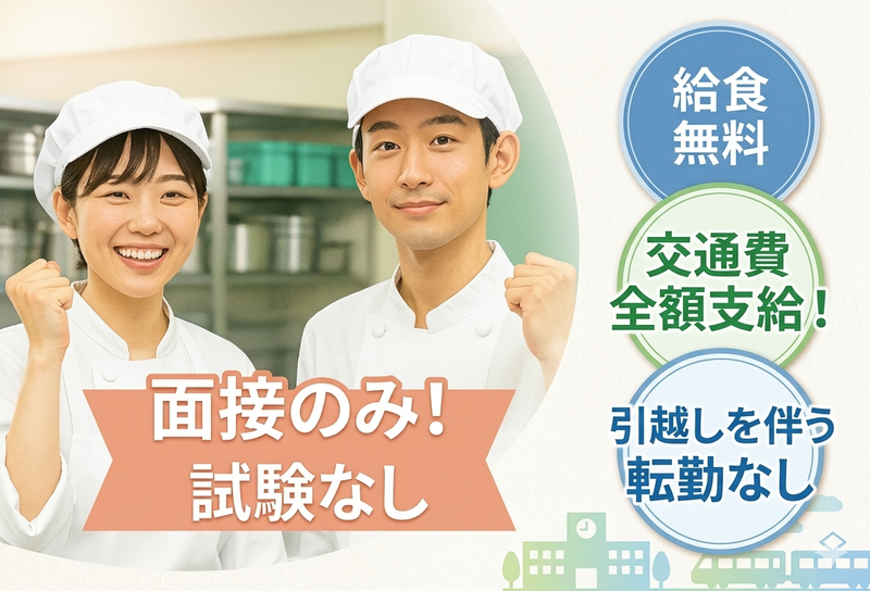 仕事内容 ⭐ 完全土日祝休み!残業なし! ⭐ 3年定着90%!創業60年の安定企業運営 相模原市南区の小学校の給食室 ✿新年度スタートにつき正社員、2名募集✿ 調理師資格があればOK。実務未経験歓迎! 飲食店などからの転職者が活躍中 ✧✧【 経験者は月給27万円開始も可 】✧✧ 「流れ作業の調理に、物足りなさを感じていませんか?」 効率優先のセントラルキッチンや、深夜まで及ぶ飲食店勤務。 もし今の環境に疲れているなら、当社の「学校給食」という選択肢を考えてみませんか。 ・✦・✨ 学校給食室はココが◎✨・✦・ ✅ 完全、土日祝休み! ✅ 年間休日120日+有給休暇あり ✅ 夕方までで残業なし! ・✦✦・✨ 当社ならではの待遇 ✨・✦✦・ ✅ スタッフ同士の相談だけでお休みOK ✅ 春夏冬休みがあり、連休取れます! ✅ 給食無料/制服・マスクなど全て無料 ✅ 衛生上の待機でも給与6割保障 ✅ 引っ越しが必要な転勤なし ✅ 月1回、食品などが当たる抽選会あり 【仕事内容】 地元の旬の食材を活かした調理がメイン。 小学校給食室での調理業務全般と食材管理の仕事です。献立に従って毎日同じ食数を、みんなで一緒に調理するから、学校給食室が初めての方も安心ですよ。 == 勤務地のおすすめPOINT == ⭐給食室としては少しゆっくり8時開始! 【 経験により開始月給27万円まで優遇 】 ▼ 在職中の方もスムーズに転職できます ▼ ⏩面接1回のみ!筆記・実技なし ⏩応募は約1分でカンタン入力 ⏩電話応募も歓迎▶028-638-5655 <こんな会社です> 全国にスタッフ3000名在籍の安定企業。 創業60年以上の実績で、長く働ける環境。 ■■■■■【 当社の魅力 】■■■■■ ⭐長年の実績で働きやすさを追求し、業界内でも際立つ高水準の待遇を実現! 「ワークライフバランスを重視したい」 「有給が取りやすい職場で働きたい」 そんな方、ぜひご応募ください。 ⭐温かな社⾵で「3年定着率90%︕」 当社はフルーツやビール等が当たる「プレゼント抽選会(毎⽉)」の実施など 従業員を単なる労働⼒ではなく、 共に歩む「仲間」として⼤切にする⽂化が根付いています。