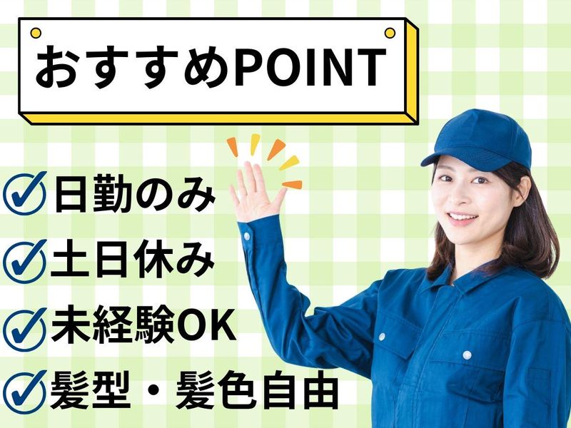 空調完備で1年中快適⭐日勤&土日休み!未経験スタートも活躍中