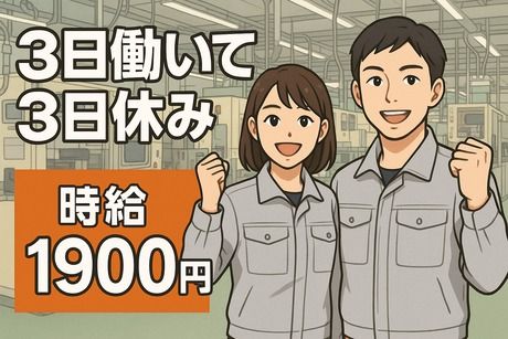 仕事内容 【勤務地】 広島県東広島市吉川工業団地(派遣先) ★八本松駅から車で約10分 ★車・バイク通勤OK! 【未経験歓迎!部品交換・メンテナンス作業】 半導体関連の工場内で、機械のメンテナンスや部品交換を行うお仕事です。 主に、機械の調子をチェックし、不具合があれば部品の交換や調整を行います。 最初は、専門的な知識や経験がなくても全く問題ありません。 入社後は、先輩スタッフと一緒に機械の状態をチェックしながら作業を進めていきますので、少しずつ仕事を覚えていけます。 グループでの作業なので安心! 仕事の流れ ★工場内を巡回し、機械のチェックを実施 ★異常を発見した場合、必要に応じて部品の交換や調整を行う ★メンテナンス作業の際は、先輩スタッフがサポートしてくれるので安心 最初は先輩がしっかり指導してくれるので、 未経験の方でも安心してスタートできます。 また、作業を進めるうちに機械の仕組みや調整方法も自然と覚えられますよ。 【メリットいっぱい!働きやすさ抜群】 ◎シフト制(3勤3休) 3日勤務したら3日休みのシフト制で、 プライベートの時間も確保しやすい! 1ヶ月の半分はお休みなので、しっかり休みながら安定した収入を得ることができます。 ◎特別時給1900円 高時給でしっかり稼げるチャンス! 時給1900円で、効率よく高収入を目指せます。 ◎交通費規定支給 交通費は規定支給されるので、通勤費の心配はありません。 ◎給与日払いOK 急な支出があっても安心!給与の日払いが可能なので、すぐに収入を受け取ることができます。
