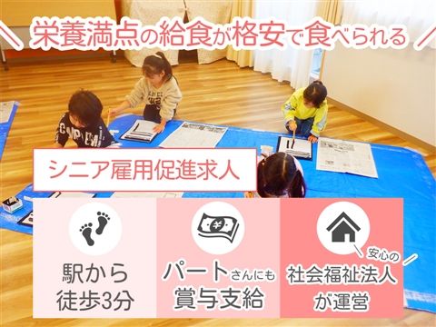シニア雇用促進求人◎就職祝い金・賞与支給◎栄養満点の給食が格安で食べられます★安定性のある社会福祉法人◎駅チカの保育園【品川区平塚・認可保育園・戸越銀座駅・保育士(シニア)・日勤パート】