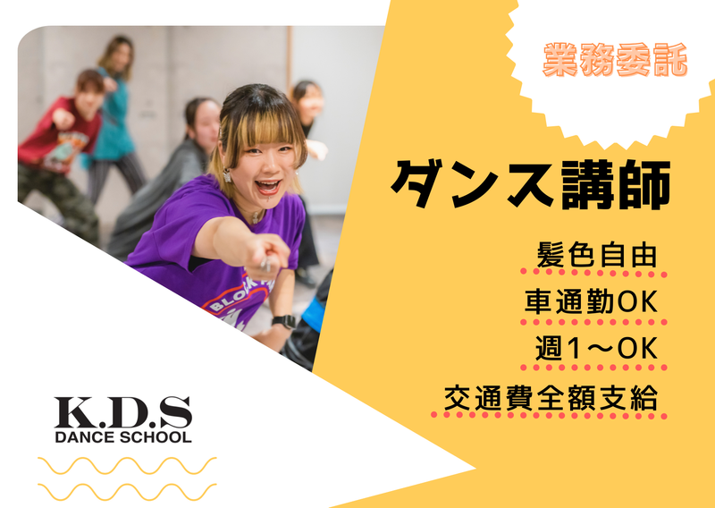 仕事内容 未就学~大人まで幅広い世代を対象としたダンススクールにて、振付を含めたダンスレッスンを担当していただきます。 ●主な業務内容 ・ダンスレッスン指導(HIPHOPメイン、その他ジャンル相談可) →週1~ 毎週固定時間 ・レッスンで使用する振付の考案や楽曲の選定・編集 ・発表会やイベント時の引率 幅広い世代の方が所属されているスクールですが、多くが未就学・小学生のダンス未経験者です。 そのため高いダンススキルよりも 「ダンスの楽しさを伝えたい」「教えることが好き」という気持ちを重視しています。 また一部クラスは経験者専用クラスなど、高いダンススキルの必要なクラスもございます。 今まで培ってきたダンス経験を存分に生かしたい方のご応募もお待ちしております。 それぞれのスキルや経験にあったクラスを担当いただけるようサポートいたします。 また、インストラクター未経験者やダンスにブランクがある方も安心してレッスンいただけるよう、しっかり研修を行いますのでご安心ください。