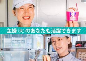 仕事内容 ★ここがポイント★ ・未経験者大歓迎◎ 全体的に難しい業務はナシ! ・10~50代の様々な方が活躍中! お互いに助け合いながら働いています ・プライベートとの両立もカンタン♪ ご家庭の都合を相談の上シフト作成します ・接客、飲食未経験の方も安心! 簡単な接客・ご案内ができればOKです! ホームページもぜひご覧ください♪ https://www.31ice.co.jp/ <具体的なお仕事> 主に、アイスクリームの盛り付けや レジ対応をお願いします。 一度にたくさんの業務を 覚える必要はありません。 お仕事は少しずつ覚えていけば大丈夫! ひとつひとつしっかりと 自分のペースで慣れていきましょう。 また、売上管理や在庫管理、 アルバイトさんの管理もお任せします。 月に1回本部とのミーティング (リモート中心)がありますが、 全体的に難しい業務はないので 安心してください。 心に余裕を持ってお客様への 対応ができる環境です! 【入社後の流れ】 入社後は、Eラーニングにて サーティワンのお仕事について タブレット学習をします。 その後、店舗に入って先輩と一緒に実践! アイスを丸めるのが得意な方や、 レジが得意な方など、 一人一人のペースに合わせて先輩が指導し、 徐々にお仕事に慣れていっていただきます。 <仕事をする環境> 10代~40代の主婦さん、 フリーターや学生が中心に活躍しています。 実際に働いているスタッフには、 お客さまとして通っていた方や アイスが好きな方が多いです。 毎月変わるキャンペーンや 人気キャラクターとのコラボが好き というスタッフも沢山います。 店内は和気あいあいとした雰囲気です。 シフトや仕事の分担など、 みんなで助け合いながら進めています。 子育て中のスタッフも在籍中! 勤務シフトはアルバイトさんとも 相談しながら決めます。 残業はほぼなしで、ある場合も クリスマス等の短い期間のみ! 定時になれば、すぐに帰られる方が ほとんどです。 美容院や友人との食事の予定も組みやすい◎ 様々なシフトがあるので、 平日の日中にしかできないことを 勤務前に済ませたり、 勤務時間中に中抜けしたり、 店舗に他のスタッフがいれば融通もききます。 仕事と家庭を両立できるよう、 工夫しております。 店舗には平日3~5名、 土日には5~7名のスタッフが 勤務します。 \先輩社員(30代・入社4年目)に聞きました!/ ■応募のきっかけ デスクワークから接客業へ。 お店の明るく丁寧な雰囲気に 惹かれました。 ■仕事のやりがい お客様との会話や、お子様からの 「ありがとう」の一言が心に響く、 温かい仕事です。 ■応募を考えている方へ 未経験でもすぐに慣れることができます。 お店のイメージ通り、 優しいスタッフが多く、 学びやすい環境なので安心してください。 \✨好き、のその先へ!/ サーティワンで描く、 店長・エリアマネージャーへの道✨ ◆ 正社員だからこそ描けるキャリア 20代での店長就任実績あり! 年齢や社歴ではなく 意欲と実力を評価。 店長経験後は、複数店舗をまとめる エリアマネージャーも目指せます。 ◆ 未経験からでも安心のサポート 東京本社での研修で、 店舗運営の基礎から学べます。 全国の同期と共に成長できるのは、 正社員ならではの特権です! 「チームで働くのが好き」 「将来はマネジメントに挑戦したい」 そんな想いを持つあなたを、 私たちは全力で応援します! ★サーティワンアイスクリームについて★ 1945年アメリカのカリフォルニア州の 郊外にBaskin(バスキン)氏、 Robbins(ロビンス)氏によって 創設された世界最大の アイスクリームチェーン! 日本では「サーティワン」でおなじみですが、 米国をはじめ海外では 2人の創業者の名前である 「バスキン・ロビンス」と呼ばれています。 サーティワンアイスクリームの工場は、 清らかな水と空気に恵まれた 優秀な環境の中で稼働しています。 安心できる、お子様から大人まで楽しめる、 本物の美味しさが味わえる。 それがサーティワンアイスクリームです。