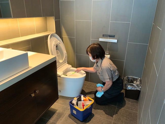夜間のホテル内大浴場・共用部清掃スタッフ