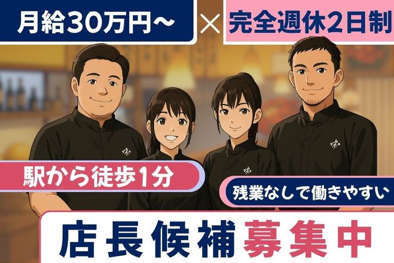 【仕事内容】 ⭐月給30万円スタート&残業なし! 完全週休2日制で、生活リズムも安定!浅草駅から徒歩1分の好立地。 経験はあとからついてくる__ 本気で成長したい人、異業種からの転職・接客未経験者の方もお待ちしています✨ 【ココで働くおすすめポイント】 ■月給30万円スタート! ■完全週休2日制&残業なし! ■浅草駅から徒歩1分の好立地 「和」をテーマにした落ち着いた店内で、お客様に寄り添う丁寧な対応を心がけています。初めての方でもリラックスできる、落ち着いた雰囲気が魅力。 休みも収入も待遇も。 妥協したくないあなたに、ちょうどいい場所、あります✨ ⏩️具体的な業務内容 ホールの現場業務をメインに、ゆくゆくはお店のマネジメントまで携われる店長業務もお任せします。 ・お客様のご案内 ・配膳・下げ膳 ・会計作業 ・カクテルなどのドリンク作成 ・開店閉店作業 ・店舗運営・管理 ・スタッフ育成・管理 ・その他お客様対応 など 最初は基本から一緒にスタートしましょう! また、「こんなことをやってみたい」「こうすれば改善できるかもしれない」などあなたのアイデアを大切にします! ================ ✅自分らしく、ムリなく働ける環境 ================ 完全週休2日制×柔軟シフト対応で予定も立てやすい! 髪色自由・ピアスOKだから、オシャレも楽しみながら働けます✨ 連休もしっかり取れるので、リフレッシュしながら長く働けます! =============== ✅月給30万円スタートで稼げる =============== 月給30万円~に加え、昇給・賞与もご用意!実力次第でさらに給与アップも! 飲食業界でキャリアアップを目指しながら、安定した生活基盤も築ける環境です。 ============== ✅飲食なのに残業なし!? そんな働き方、実現できます。 ============== 仕事終わりはあなたの時間✨ スタッフ一人ひとりが無理なく安心して働ける環境づくりを大切にしています。 【求人ID-YUS】