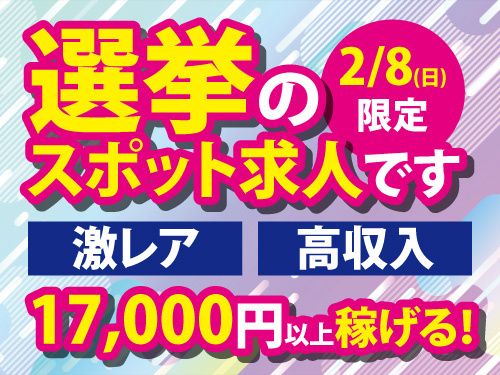 選挙スポット求人!単発!2月8日(日)! スポットで17,000円以上稼げる!未経験OK!