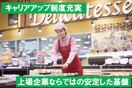 求めている人材 【応募条件】 高卒以上 普通自動車免許(AT可) 35歳以下の方 【こんな方大歓迎です!】 ・生鮮食品、青果、精肉、鮮魚、農産、畜産、惣菜、お弁当などに関わる仕事に興味のある方 ・食品、スーパー業界などに興味のある方 ・新たなキャリアにチャレンジしたい方 ・お客様と顔を合わせて話すのが好きな方 ・売り場づくりや販売計画に興味がある方 ・安定企業、上場企業で働きたい方 ・UIターン歓迎 \女性活躍中/ 女性が活躍できる証の「えるぼし認定」最高ランクを取得! 2027年までに、女性管理職者数25名を目標としています。 (2024年1月末時点13名) 年齢の条件と理由:あり(例外事由3号のイ・35歳未満(長期勤続によるキャリア形成のため))