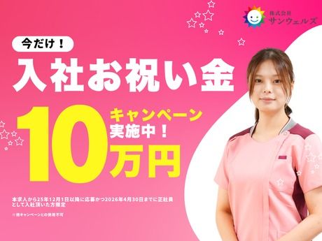 仕事内容 \今 だ け ! 期間限定で2つのキャンペーンを実施中! / ●入社お祝い金10万円支給キャンペーン 本求人から 25年12月1日以降に応募かつ2026年4月30日までに 正社員として入社頂いた方限定で支給いたします。 ※他キャンペーンとの併用不可 ●引越し支援金30万円支給キャンペーン 「入社時に引越しを伴う方」へ支給いたします。(諸条件あり) 転職時に引越しを予定されている方はこの機会に是非ご検討ください! 詳細は下部の待遇・福利厚生にてご確認ください! ー *【PDハウスが生まれた経緯】* 介護施設の運営を通じて、パーキンソン病患者の病状が悪化することに課題意識を持ち、 ひとつの病気に特化した施設が必要ではないかとのリハビリスタッフの声からPDハウスが誕生しました。 「リハビリをする機会を増やして欲しい」 「出かけたいけど1 人では動けない」 「動けるときは自分で動きたい」 ご入居者様の声に寄り添い、未来に向けた願いと想いを実現していく為の施設です。 私たちにしかできない挑戦をこれからも続けていきます。 *【PDハウスの特徴】* 専門知識を持つスタッフが、ご入居者様おひとりおひとりに合わせた専門的な医療とリハビリ、看護、介護を提供しています! ●社内資格制度や研修制度、専門医監修による“PDハウスリハビリメソッド”の活用など、 スタッフの「専門力向上」「知識向上」に努めています。 ●ご入居後に運動機能や認知機能の改善、QOLの改善を実感される方が多くいらっしゃいます。 ●ご入居者様の【平均在施設日数は3年4ヶ月】一定期間しっかりと関わることができます。 ※2019年7月にOPENしたPDハウス野芥の平均値(25年5月末時点) *【仕事内容】* 看護師の業務は主に「訪問看護業務」「施設看護業務」になります。 <主な業務内容> ・入居者様の健康管理 ・主治医・薬剤師と連携した内服管理 ・喀痰吸引、胃ろう、在宅酸素管理 など ★*「訪問看護業務」*…入居者様の居室へ訪問する施設内訪問看護を行います。 介護職員や看護補助職員と一緒に訪問していただくケースもございます。 ★*「施設看護業務」*…ナースコールがあった際の訪問対応や、内服管理、訪問看護のフォロー等も行います。 また往診医の受診がある際は、入居者様の状態や希望についてやりとりを行い、適切な処置や処方を実施します。 【アピールポイント】 *★月3日まで希望休の申請OK!★* 前月に希望休をお伺いして毎月のシフトを決めています。 お子様の学校行事など、プライベートの予定に合わせてお休みの取得も可能です◎ (希望が重なる場合はご調整いただく場合もございます。) *★有給休暇が取りやすい!★* 社員一人ひとりが安心して休暇を取りやすい環境を整えています。 休暇取得に対する理解とサポート体制が整っているため、仕事とプライベートの両立がしやすく、リフレッシュしながら働くことができます♪ *★先輩スタッフの声★* 『PDハウスは残業がほとんどなく、月の平均残業時間もわずか4.4時間ほど。 年間休日も120日あって、休みもしっかり取れます。 前職と比べて家族と過ごす時間が増えたことで、プライベートが充実しています。』 『これまで経験してきた病院や施設と比較すると、ご入居者様の入居期間が長いと感じるので、 おひとりおひとりとしっかり関わることができています。』 『入社した時はパーキンソン病の知識がなく不安でした。 でも、OJTや研修制度、先輩方の丁寧なフォローなど教育体制が整っていたので、イチから学ぶことができました。 今ではひとり立ちして、新しいスタッフさんをフォローできるまでになりました。』 『多職種で連携し、ご利用者様のためにベストな対応を考えられる雰囲気を感じています。 職種間の壁にとらわれず、スタッフ全員でご入居者様を第一に考えていきたいという方にぜひ仲間になって欲しいです。』 『産休・育休を取って復職しました。 周りのスタッフにも温かく受け入れてもらえて、家庭と仕事の両立がしやすい環境です。 また、男性も育休を積極的に取られていて、社員の満足度向上、働きやすい環境づくりに積極的に取り組んでいる会社だと感じています。』 *【医療/福祉業界TOPクラスの好待遇】* 月給例\336,500円~/年収例\5,118,000円~ *【働きやすい環境!!】* 年間休日120日&残業時間月平均4.6時間☆ 【会社説明】 □□□―――――――――― PDハウス会社説明会開催中! ――――――――――□□□ 「PDハウスってなに?サンウェルズってどんな会社?」 「パーキンソン病専門って難しそう‥」 「職種ごとの働き方が知りたい!!」 「待遇や福利厚生はどうなの?」 ”応募する前に知りたい!!” そんなことをお伝えさせていただきます☆ 現在3つの説明会をご用意しております◎ ご希望の説明会にご予約ください☆ 1)当日面接可能!対面説明会 採用担当が直接皆様へご説明させていただきます!リアルな声が聞けるチャンス? 希望者は説明会後に当日面接も可能です!即日内定獲得も◎ 2)施設見学付き説明会 オー