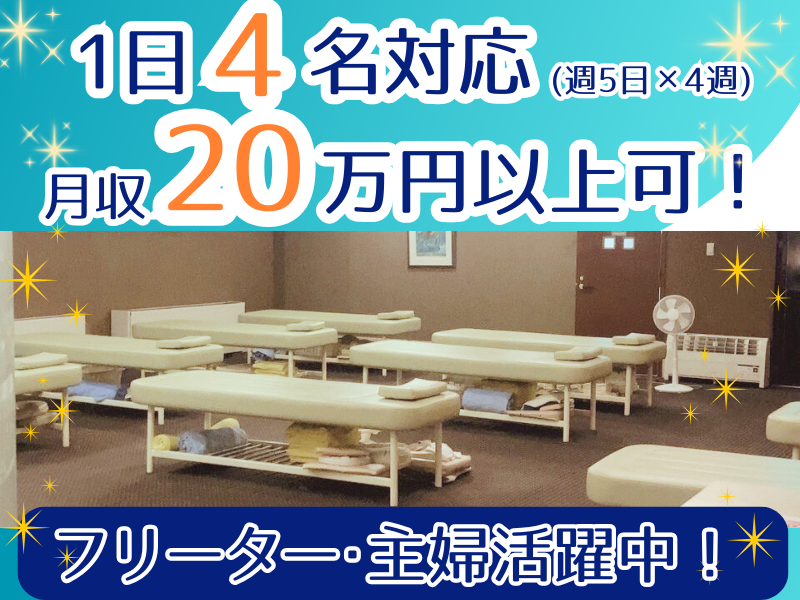 仕事内容 \ “ありがとう”が直接もらえる仕事✨ / 人気のサウナでのボディケアセラピスト募集! 常連の方は指名で来店されることが多いので フリーで来られたお客様へつくチャンスがあり! ⏩歩合は60%なのでしっかりと稼げる環境! ◆週2日~OK!時間相談OK! ◆昼勤務で無理なく働ける! ◆副業・Wワークで働く方も◎ ◆経験を積んで手に職をつけられる! ◆高率歩合で高収入も可能! 理学療法士を目指す学生さんや 経験を活かして働きたい方も大歓迎◎ ~……*……~……*……~……*……~ ■施術内容 ―――――――――― 指圧マッサージ、ボディケアがメインです。 ツボを刺激し、凝りをもみほぐし、 お客様へ日々の疲れを取っていただきます! メニューは1つだけですし、 お金を取り扱うこともないので 安心して働けますよ! 慣れてきたら、 お客様から指名を受けることも! 歩合UPも可能です! ⭐昼間スタッフ3名在籍! 指名を多くもらっている スタッフも2名程います! ⭐フリーのお客様は順番制で対応! 常連様が指名されることが多いので、 ” 指名をもらえるチャンス ” も しっかりあるから安心◎ - ▶▷ やりがいポイント - 施術後に 「ありがとう」「気持ちよかった!」 と直接言ってもらえる仕事です✨ ■完全出来高制 ―――――――――― 歩合給60%~! 効率歩合で高収入可能です! ■ボディケアの経験者歓迎! ―――――――――――――― 「もともと他のリラクゼーションサロンで 働いていた」という方も大歓迎! 経験活かして活躍しませんか? 未経験の方でも大丈夫ですよ! 一緒に成長していきましょう♪ 「子育てが落ち着いて 仕事復帰したい」主婦(夫)さん 「ガッツリ稼ぎたい」フリーターさん も大歓迎! - ▶▷ Wワーカーさんも活躍中! - 副業・Wワークも歓迎! 実際に… 心理カウンセラーとして働きながら 手のマッサージスキルを活かして 勤務している方も◎
