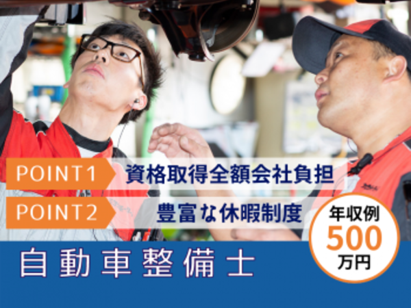 求める人物像 ・車が好きな方 ・チームでものごとを解決したい方 ・自分の技を磨いていきたい方 ・お客様の困りごとを解決したい方 応募資格 1級自動車整備士 2級自動車整備士 3級自動車整備士 現時点で、整備士資格を取得していなくても大丈夫です。 ※資格取得は年に2,3名計画的に上級資格にチャレンジしています。 無資格者も資格取得支援があります。 中には、他業種から昔からなりたかった整備士にチェレンジしたいと 転職された方もいます。 ※留学生の方も一度お問い合わせください。 必要な経験等 自動車整備士としての経験があればいいですが ガソリンスタンドで1年経験がある等ご相談ください。 未経験の方も一度ご相談ください。 必要な資格 1級自動車整備士 2級自動車整備士 3級自動車整備士 現時点で、整備士資格を取得していなくても大丈夫です。 学歴 不問