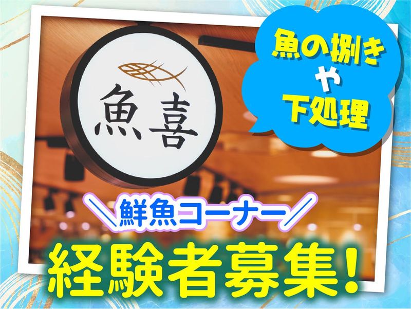 仕事内容 ⸜⸜✦2026年3月19日オープン予定✦⸝⸝ ⸜⸜✦オープニングスタッフ大募集✦⸝⸝ ⏩生活に活かせるスキルが身に付きます◎ ⏩従業員割引で商品をお得にGET♪ ⏩経験考慮します!ブランクもOK◎ ~・~・~・~・~・~・~・~・~・~ 【 仕事内容 】  ̄V ̄ ̄ ̄ ̄ ̄ ̄ 鮮魚店「魚喜」で海の幸を提供する 鮮魚加工業務をお任せします! ▼具体的には… ✅魚の捌き(切身・刺身への加工) ✅商品陳列(煮・焼・フライ・天ぷら等) ⭐バックヤード作業で接客少なめ!! 調理・料理のスキルアップも可能! 柔軟な働き方を推進しているため プライベートと両立しやすいです✨ 仲間と楽しく働ける温かい職場ですよ◎ 未経験でも安心して始められる教育体制と 経験者は即戦力として活躍できる環境♪ ※鶴見緑地店オープン前は 近隣の既存店舗にて研修が可能です◎ ~・~・~・~・~・~・~・~・~・~ 【 株式会社魚喜について 】  ̄V ̄ ̄ ̄ ̄ ̄ ̄ ̄ ̄ ̄ ̄ ̄ ̄ 1971年に創業し、 現在まで全国各地に事業展開! ●鮮魚店:38店舗 ●飲食店:8店舗 を経営中! 豊かな食生活を皆さまに届けるべく 日々お客様に料理を提供しています。 ~・~・~・~・~・~・~・~・~・~ 【 スタッフインタビュー 】  ̄V ̄ ̄ ̄ ̄ ̄ ̄ ̄ ̄ ̄ ̄ ̄ ̄ 今までに鮮魚加工の経験があり、 スキルを活かしたくて応募しました。 ブランクがあったので、最初は 包丁や魚の扱いに不安はありましたが、 実務を通して目利きや捌き方を 思い出しながら身につけるうちに、 今では自信をもって 作業できるようになりました。 やりがいは、 自分がさばいた魚をお客様におすすめし、 喜んでもらえた時の達成感。 従業員割引で、お得に美味しい鮮魚が 食べられるのも嬉しいです◎ ブランクがあっても 自分のペースで大丈夫! わたしたちと一緒に成長しましょう✨ (30代男性/未経験/スーパー鮮魚担当)