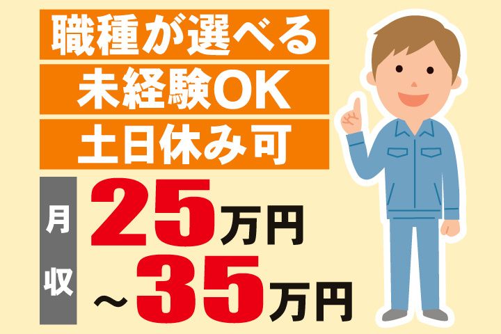 仕事内容 \月収25万円~35万円の高収入を目指せる/ 甲賀市で工場内の製造作業スタッフ募集中! 検品・梱包など、あなたの好きな仕事が選べます。 未経験の方も資格・経験を活かしたい方もOK! 若手~中高年まで幅広い世代が活躍しています。 <オススメポイント> 〇高収入!月収25万円~35万円可 〇製造業が未経験でも問題ナシ 〇日勤固定or夜勤固定が選べる 〇土日休みor4勤2休のカレンダー 〇フォークリフト免許があれば活かせる 〇20代・30代・40代・50代の男女活躍中 <工場内製造作業員の仕事内容> 住宅用木材のプレカット工場でのお仕事です。 あなたのお好きな仕事が選べます! (1)検品・梱包作業 (2)機械オペレーター・検品・梱包 (3)フォークリフトオペレーター (4)手加工作業 <未経験スタートOK> 製造工場での勤務経験は必要ありません! 木材加工や工場ワークが初めての方も大歓迎! 先輩スタッフがイチから丁寧にお教えします。 <こんな方にピッタリ> 〇未経験から製造業にチャレンジしたい方 〇日勤専属(夜勤専属)の仕事がしたい方 〇フォークリフト作業の経験を活かしたい方 〇高収入を目指してガッツリ働きたい方 〇ハローワークで自分に合った仕事が見つからない方 <経験があれば活かせます> フォーク作業・マシンOP・軽作業など、 工場内作業や倉庫内作業の経験があれば活かせます。 正社員・パート・アルバイトなど雇用形態は不問! もちろん未経験の方やブランクある方もOKです。 TEL0297-20-8802 ご質問等はお気軽にお問合せください。