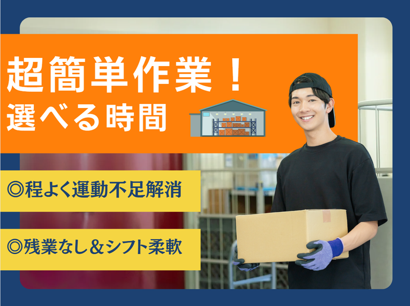 仕事内容 \ 簡単2STEPで勤務初日で一人前 / 無理なく・程よく「運動不足を解消したい」「適度に体を動かしたい」!でも「稼ぎたい」そんな方にお勧めのお仕事です。 スーパーでおなじみの常温食品(お菓子やカップ麺、飲料など)を仕分ける、驚くほどシンプルな軽作業です。 勤務初日でもすぐに一人前になれると大好評!未経験の方でも安心してご応募ください。 【具体的な仕事内容は、"見て、乗せるだけ"の2ステップ!】 (1)レールをゴロゴロ流れてくる商品をチェック! (2)商品をヒョイっと持ち上げ、すぐ後ろの台車に乗せる! たったこれだけ!自分のペースでモクモクと集中できるので、ストレスフリーで働けます。 【安心ポイント】 ✅稼げる! 高時給&日払い制度あり(規定)! ✅体力的な心配は無用です! 扱う商品の約8割は軽いもの。飲料ケース(最大15kg)もありますが、扱う頻度は少なめ。長時間持ち続けることは一切ありません! ✅プライベートも大切にできる! 残業はほとんどありません!毎日ほぼ定時で上がれるので、仕事終わりの予定も立てやすいのが大きな魅力です。 ✅安定した環境で長く働ける! SGホールディングスのグループ会社なので、安定性は抜群。担当者が初日の立ち合いから定期的なフォローまで、あなたを全力でサポートします!長期的に働ける職場です! 元ドライバー経験者のスタッフが安心して勤務できるように、全力サポート!初日の立ち合いはもちろん、定期的に「少しずつ慣れてきた?」そんなお電話も。 「派遣会社を点々としてきた・・・」そんなあなたに見てほしい求人です! 無期雇用派遣に切り替えて、3年以上勤務しているスタッフも活躍中◎ 最初からすべてをお任せすることはなく、経験を積んで少しずつ出来ることを増やしていきましょう◎ 基本的にモクモク・コツコツ作業なので 自分のペースで集中して働ける!と好評です。