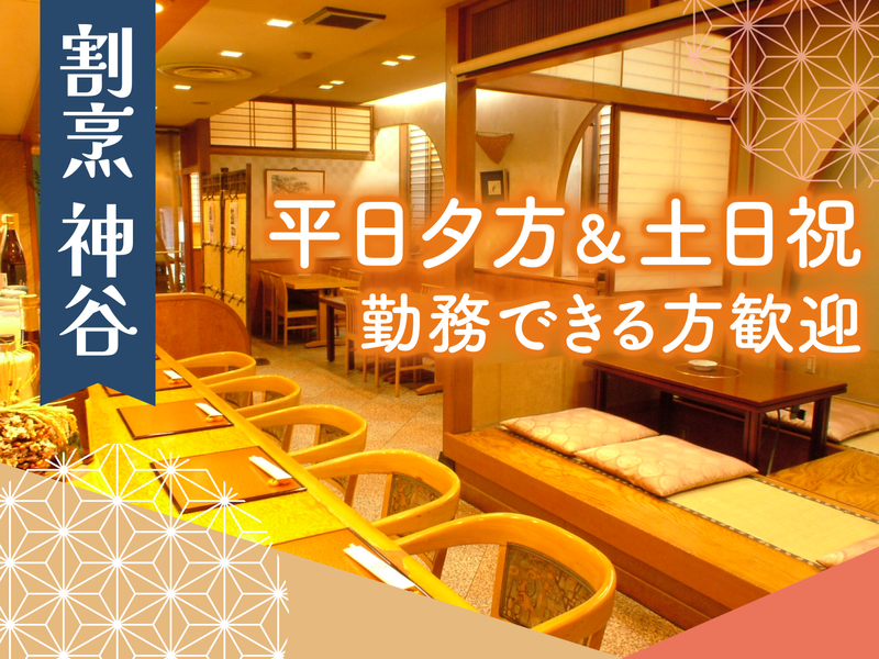 仕事内容 ✼••┈┈┈┈┈┈┈┈┈┈┈┈┈┈┈┈••✼ \ 土日祝勤務できる方、積極採用中! /  ̄ ̄ ̄ ̄ ̄ ̄ ̄ ̄ ̄ ̄ ̄ ̄ ̄ ̄ ̄ ̄ ̄ ̄ ̄ ̄ ✨平日夕方&土日祝勤務できる方歓迎 ✨土日のみや平日のみも大歓迎! ✨着物で働く、ちょっと特別な時間! ✨週2日・1日3h~で学業や家庭と両立◎ ✨就活や社会勉強にも活かせる! ◆昭和10年創業!3代続く川口の日本料理店 現在、大学生の卒業に伴い複数名募集中! 地域に長く愛されてきたお店で ホールスタッフとして働きませんか? ✼••┈┈┈┈┈┈┈┈┈┈┈┈┈┈┈┈••✼ 【お仕事内容】 ホール業務をお任せいたします! ●お客様のご案内・接客 ●オーダーを取る ●料理の配膳 など まずは笑顔で、 ”いらっしゃいませ”が言えればOK! スタッフのほとんどが未経験からの スタートだから、ご安心くださいね♪ ==================== \\ 着物で接客できます♪ // 着付けは、一人でできるようになるまで 若女将がしっかりサポートするので 安心してくださいね! 慣れてくると、ほとんどのスタッフが 10分くらいで着られるようになります。 早い方だと、7~8分ほどで着られる ようになりますよ♪ 以前働いていた大学生スタッフからは、 「就活でのマナーに役立った」 「結婚式などでも活かせた」 といった声もあります◎ 普段なかなかできない経験が できるのも、この仕事の魅力です♪ \\ 学生や主婦さん活躍中! // ✅ 就活にも役立てられます →丁寧な言葉遣い・所作が身につく ✅ シフトは2週間ごと提出 →学業や家庭の予定に合わせやすい ✅ 扶養内勤務OK →平日昼のみも可能 ✅ 髪型・髪色自由 →清潔感があればOK♪ これまで活躍した学生スタッフも、 入社から卒業まで 続けてくれる方が多い職場です! ぜひあなたのお話を 面接でお聞かせください!