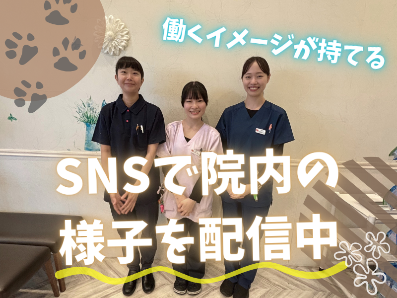 【保険制度】 雇用保険、労災保険、健康保険、厚生年金 待遇・福利厚生 【福利厚生】 健康保険、厚生年金保険、雇用保険、労災保険 ◎昇給あり ◎賞与あり ◎交通費支給 ◎慶弔休暇 ◎社会保険完備 ◎育児休業制度 ◎介護休業制度 ◎産前産後休業制度 ◎健康診断費用全額負担 ◎自院診察費用割引制度あり ◎セミナー・学会参加支援制度あり  ̄ ̄ ̄ ̄ ̄ ̄ ̄ ̄ ̄ ̄ ̄ ̄ ̄ ̄ ̄ ̄ ̄ ̄ ✨2年目の看護師さんにインタビュー✨ ⏩どんな職場? ⇒飼い主さんと話す機会が多く、信頼関係を大切にしている職場です。獣医のサポートだけでなく、歯磨き教室などのイベント企画・運営にも挑戦できるので、幅広い経験を積めます。スタッフ同士の仲も良く、明るく前向きな雰囲気です。 ⏩仕事で楽しいと感じるのはどんな時? ⇒イベントを通して飼い主さんが楽しんでくれた時や、自分の説明やアドバイスが役に立った時にやりがいを感じます。 ⏩入社前に不安だったことは? ⇒ペットを飼ったことがなく、飼い主さんの気持ちに寄り添えるか不安でした。でも、話を聞きながら信頼関係を築いていくうちに、自信を持ってアドバイスできるようになりました。 ⏩どんな人がこの仕事に向いている? ⇒明るく元気に対応できる方、飼い主さんのお話をしっかり聞いて寄り添える方が向いています! ⏩求職者に向けて一言! ⇒動物が好きな気持ちがあれば、経験がなくても大丈夫!いろいろなことに挑戦できる職場で、一緒に成長していきましょう!