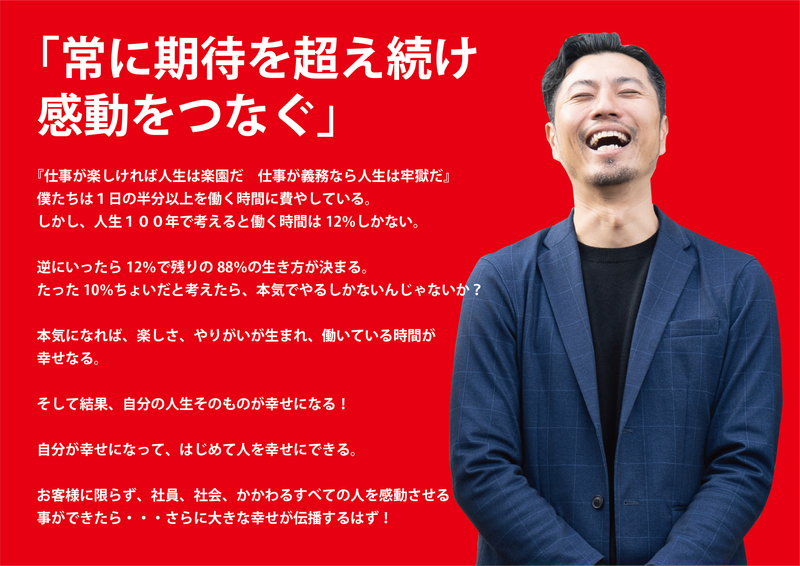 職場環境 弊社には、不動産事業、建設事業、現場施工事業、クリエイティブ事業、飲食事業にて約40名の スタッフが働いております。 まだまだ未熟な部分も多い現状ですが、働く社員の皆様からの意見も伺いながら、徐々に改善して おります! 一緒に最高の会社を作りませんか? 喫煙所:なし(敷地内全て禁煙)