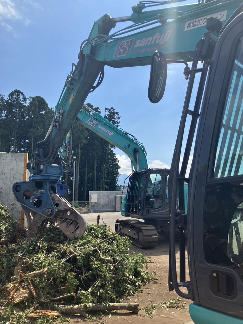 木材リサイクル工場の重機オペレーター