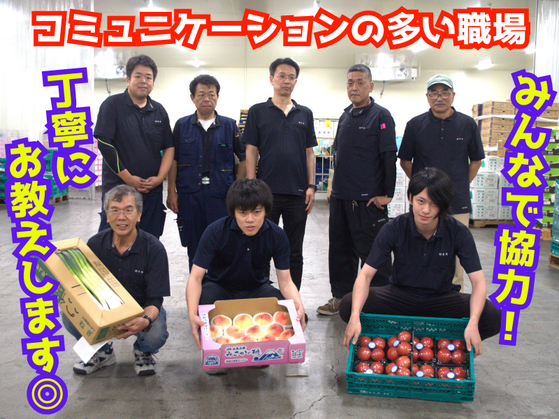 職場環境 当社は、日本最大級の果物卸売市場「大田市場」内で 果物資材を扱う、創業50年以上の安定企業です。 「食」に関わる仕事のため景気に左右されにくく、 季節の果物を感じながら働けるのも魅力です。