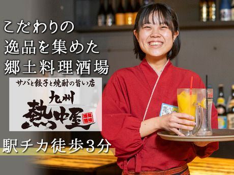 仕事内容 【ホールスタッフのお仕事】 ・席へのご案内 ・注文取り ・料理運び など。 まずは明るい挨拶ができればOK! 他のスタッフと協力しながら、 お客様にとって居心地の良い空間を 一緒に作っていきましょう。 【未経験でも安心のワケとは?】 先輩達の多くが未経験スタート! 初めてで不安...な気持ちがよ~くわかります。 だから、 挨拶の基本~メニューまで 優しく丁寧に指導するのはもちろん、 お仕事中も先輩スタッフが近くにいて、 困った時はすぐフォローします! 【九州熱中屋】 「もつ鍋」「鉄鍋餃子」「薩摩揚げ」など 皆に愛される九州郷土料理をご用意。 九州各地の美味しい郷土料理を集めた 活気ある大衆酒場です。