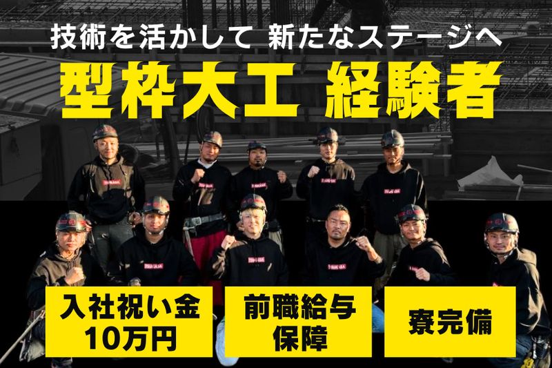 \3年以上の型枠工事経験者/⭐入社祝い金10万⭐土日休み可⭐前職給与保証⭐新築寮完備⭐資格取得支援⭐独立支援あり