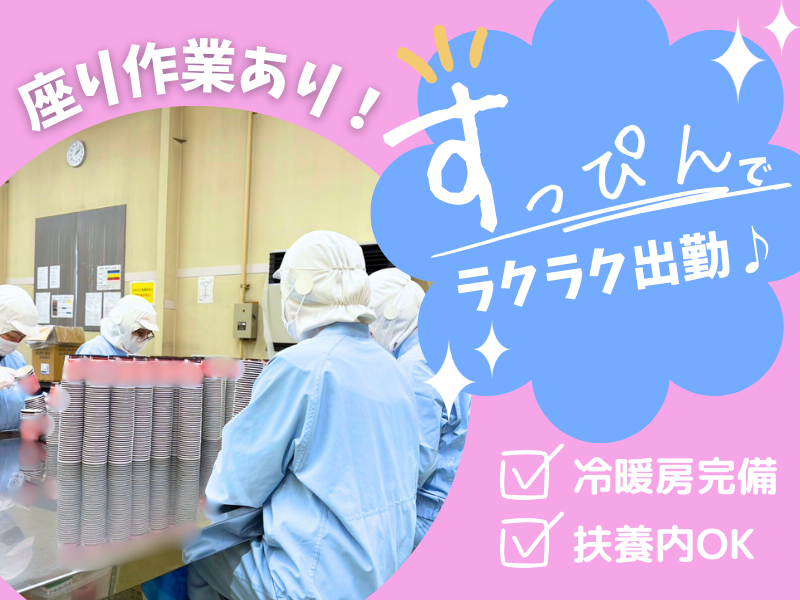 仕事内容 This position requires Japanese Languag Proficiency That Level N2 or higher. ※日本語検定N2以上を必要とする職務内容。 / 「お子さんを送り出してから、 お迎えに行くまで」 そんな限られた時間を、 1番効率良くできるお仕事です! \ 【こんな方にピッタリ】 ★働いた年数に比例して昇給あり ★20~30代の主婦さん活躍中! ★家事の合間にお小遣いを稼ぎたい ★人と話すより、コツコツ作業が好き ★メイクや服装に気を使わず働きたい ――――――――――――――――――― 紙コップの検品・袋詰め作業をお任せします。 【具体的な作業内容】 ◎目視検査 製品に傷や不良がないかを確認します。 ◎袋詰め 製品を袋に詰めていきます。 ◎生産ラインに流す 詰めた製品を次の工程に移します。 ===================== お仕事はたったのこれだけ! 一日でベテラン感出せちゃう、 とっても簡単でシンプルな作業です♪ わからないことがあれば、 フォロー体制も万全なので、 未経験の方でも安心スタート◎ ===================== <午前中> 紙コップの袋詰め <午後> 目視検査 ◎5~6人で1つの作業台で作業します。 基本はモクモク自分のペース。 困った時だけサッと声を掛け合える、 ちょうどいい距離感の職場です。 わからないことがあれば すぐに質問できたり、急なお休みも 相談しやすい環境です。 ================= ✅アピールポイント ================= ✨未経験でも安心 「品質チェックって難しそう…」 そんな心配は不要です! 先輩スタッフが丁寧に教えます。 一つ一つ確認項目を覚えていけばOK なので、自分のペースで慣れていけます。 ✨コツコツ、黙々作業が好き 集中して作業に取り組めるので、 あっという間に時間が過ぎます。 自分のペースで進められるので、 プレッシャーを感じることもありません ================= ✅主婦に優しいポイント ================= ✨エアコン完備で快適な職場 一年を通して快適な環境で、 集中して作業に取り組めます。 ✨家事との両立もラクラク 勤務時間は9:00~16:00で 残業はほとんどありません。 平日のみの勤務もOKなので、 土日はしっかり家事に専念できます。 ✨20名のパート・アルバイトのうち なんと15名が子育て中のママさん! 当社の職場は、子育て世代の女性が多数 活躍しています。同じ境遇の仲間が 多いからこそ、悩みや不安を 共有しやすく、心強い環境です。 ✨急なお休みにも対応します! お子様の急な発熱や、ご家庭の都合で どうしても休まなければならない時も 遠慮なくご相談ください。 アットホームな雰囲気で、困った時は お互いに助け合う、温かい職場です。 ✨時間のない朝も大丈夫! 帽子とマスク着用で目しか出ていないため、 すっぴんで出社OKです。 ================= ✅こんな方にオススメ! ================= ✨週3~4日程度で、家事や育児と 両立しながら無理なく働きたい 勤務日数や曜日など、あなたの ライフスタイルに合わせて 柔軟に対応します。 お気軽にご相談ください。 ✨オフィスワークはちょっと苦手… 体を動かす仕事が好き! 当社の紙コップの品質チェックは、 座り作業が中心ではありますが、 適度に体を動かす作業も含まれています 気分転換にもなり、メリハリを つけて働けます。 ✨PCスキルに自信がないから、 PCを使わない仕事を探している パソコン操作は一切不要! 難しいスキルは必要ありません。 ================= ✅先輩スタッフからの一言 ================= 子どもが熱を出して、急遽帰らなくては ならなくなった時、柔軟に対応して くださり、とても助かりました! 主婦の方が多い職場なので、 理解があり、働きやすい環境です◎ 事業内容:流通加工業
