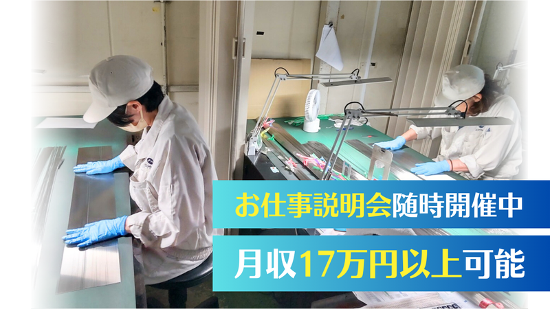 仕事内容 ————————————————— \未経験から始めやすい軽作業/ 医療用注射針に使用される ステンレス製パイプの 目視選別作業のお仕事です。 ————————————————— ▶面接時履歴書不要 ▶お仕事説明会 随時開催中 平日のみ・土日祝休みで プライベートとの両立も◎ コツコツ作業が好きな方に おすすめのお仕事です。 【仕事内容】  ̄ ̄ ̄ ̄ ̄ ̄ 医療用注射針に使用される ステンレス製パイプの目視選別作業を お任せします。 ・製品に傷、汚れ、 曲がりなどがないかを目視で確認 ・不良品があった場合は取り除く作業 ・選別結果を作業記録へ記入(手書き) 上記作業を手順に沿って 繰り返し行っていただきます。 特別な資格や経験は必要ありません。 ★メリット★  ̄ ̄ ̄ ̄ ̄ ̄ ✨ 完全週休2日制(土日祝休み) ✨ GW・お盆・年末年始休暇あり ✨ 有給休暇が取りやすい環境 ✨ 昇給あり/賞与年2回支給 ✨ 平日・日中のみで生活リズム安定 ✨ 未経験スタートの方が多数活躍中 *** 作業はとてもシンプルなので、 工場勤務が初めての方も 始めやすいお仕事です。 入社後はOJTで 作業の流れを一つずつ丁寧にレクチャー。 分からないことはすぐに聞ける環境なので 不安なくスタートできます◎ 採用は人柄重視です。 「コツコツ作業が好き」 そんな気持ちがあれば大丈夫です。 *** <職場環境>  ̄ ̄ ̄ ̄ ̄ ̄ ✅現在は女性スタッフが中心に活躍中。 落ち着いた雰囲気で、 モクモクと作業に集中できます。 ✅工場内は空調完備。 季節を問わず、快適な環境で 無理なく働ける職場です。 ■■■■■■■■■■■■■■■■■■ 応募やお問合せは下記番号まで お気軽にご連絡ください。 ✅TEL:0246-36-6870 ■■■■■■■■■■■■■■■■■■