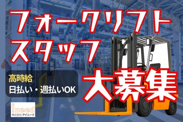 ★夜勤★2名のみ追加募集★高単価フォーク作業★週4日~シフト自由★日払い週払い★服装・髪型・髪色自由★追加募集★長期★