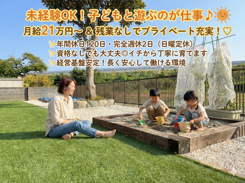 求めている人材 ✨ 保育士または児童指導員任用資格 ✨ 普通自動車運転免許(AT限定可) ✨ 年齢・性別不問(シニアも活躍可) ✨ 子どもと接することが好きな方