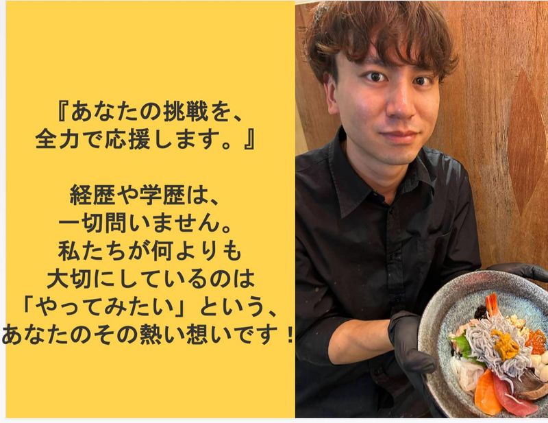 仕事内容 ●○●…………………………………………… 『あなたの挑戦を、全力で応援します。』 経歴や学歴は、一切問いません。 私たちが何よりも大切にしているのは 「やってみたい」という、 あなたのその熱い想いです! ……………………………………………●○● \ ⭐この求人のおすすめポイント⭐/ ─────────────────── ✅未経験でも月給25万円スタート☆ ✅週休2日制&残業少なめで安心 ✅第二新卒・業界未経験歓迎♪ ✅性別問わずキャリアアップを目指せる! ・・・・・・・・◆◆◆・・・・・・・・ ╭━━━━✨ 仕事内容 ✨━━━━━╮ 海鮮丼店のホール・キッチンスタッフです。 店舗管理、マネジメント業務などの キャリアアップもOK ╰━━━━━━━━━━━━━━━━╯ 多くの観光客で賑わう『鎌倉小町通り』で 多くの人に愛される海鮮丼店☆ あなたには、お店の顔として お客様をおもてなしし、美味しい海鮮丼を 提供していただきます◎ まずは簡単な業務からスタート! 飲食経験がない、ブランクがある方なども大歓迎です! 【具体的なお仕事】 …………………………… ⏩ホール業務 └お客様のご案内、オーダー受付 └料理やドリンクのご提供 └レジ対応 └テーブルの片付け など ⏩キッチン業務 └簡単な食材の仕込み、調理補助 └盛り付け、トッピング └食器の洗浄 など ゆくゆくは・・・ ⏩店舗管理 └売り上げ管理 └シフト管理 └マネジメント業務などの キャリアアップも! ・・・・・・・・◆◆◆・・・・・・・・ ……………………………………… 飲食業未経験でも全く問題ありません! 先輩スタッフが「いらっしゃいませ」の 挨拶から包丁の握り方まで、 基礎から丁寧に指導します。 あなたのペースに合わせた指導でしっかり ノウハウを学んでいただけます! ※店長になれば【月5万円の役職手当】がつき さらに収入がアップします♪ ……………………………………………… 今後の全国展開を見据えた積極的中! あなたにはその新店舗立ち上げを担う 『初期メンバー』として ご活躍いただきたいと考えています。 希望があれば会社の幹部候補として、 将来的には複数店舗を統括するエリアマネージャーなど さらに上のキャリアを築くことも可能です。 現在、神奈川の他に千葉、福井、広島、 島根、福岡で展開中。 ⭐応募していただく皆様へ*。・  ̄ ̄ ̄ ̄ ̄ ̄ ̄ ̄ ̄ ̄ ̄ ̄ ̄ ̄ ̄ ̄ 「飲食の仕事は初めてで、 自分にできるか不安…」 そんな方も、どうぞ安心してください。 入社する先輩のほとんどが未経験スタート。 だからこそ、あなたの不安な気持ちが よく分かります。 私たちが求めているのは、 立派な経験やスキルではありません。 「仲間と一緒に成長していきたい」 という前向きな気持ちです。 第二新卒やフリーターから正社員を 目指す方も大歓迎☆ あなたのその一歩を、全力で支えます! ご応募を心よりお待ちしております。 ・・・・・・・・◆◆◆・・・・・・・・