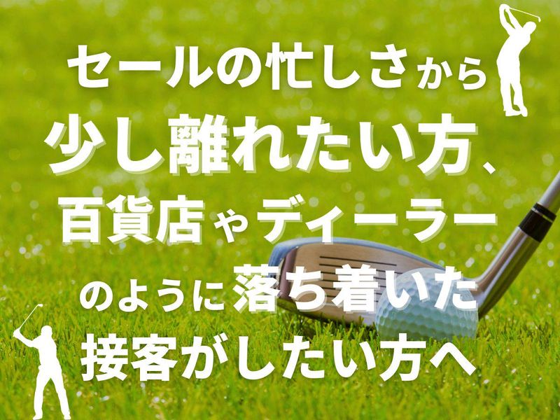 求めている人材 ◆「実際に」年間休日120日休める ◆サービス残業なし 【必須】 何らかの接客・販売経験(業界不問) 【歓迎】 ゴルフが好きな方、またはゴルフ業界に興味がある方 百貨店、アパレル、ディーラー等でのマネジメント経験 「1年間で目に見える成果を出したい」という意欲のある方 ■この仕事の魅力 「期間限定だからこそ迷わず挑戦できる」 お客様はブランドの質を重視される方がほとんどです。 そうした方々と対等に話すための知識やマナーは一生物の財産になります。