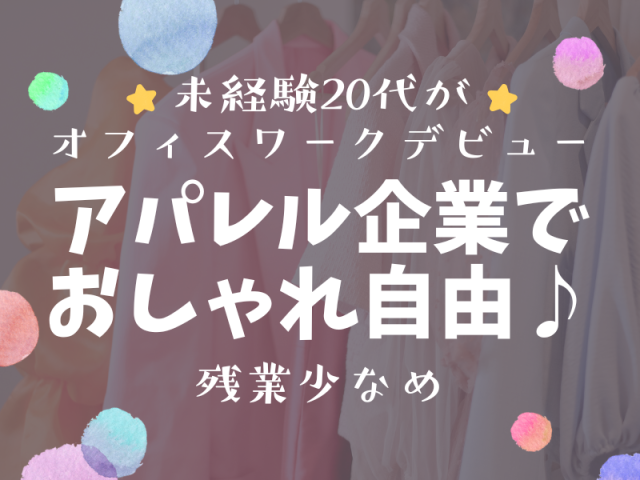 ★月給制★未経験OK!アパレル業界≪20代30代が活躍≫平日休みあり!人気のシフト制♪/表参道駅 オフィスワーク経験者歓迎! 髪色・服装・ネイル自由♪自分らしく働けます! :*:・'゜☆' .:*:・'゜☆' .:*:・'゜☆' .:*:・'゜:*:・'゜☆' .:*☆' .: ≪超大手アパレル企業≫ 100以上のブランドを展開する大手グループで、 オンラインストア対応スタッフを大募集! :*:・'゜☆' .:*:・'゜☆' .:*:・'゜☆' .:*:・'゜:*:・'゜☆' .:*☆' .: \月給制で安定収入&おしゃれ自由/ ★月給27万円+交通費 ★完全週休2日(希望休考慮)&残業ほぼなし ★大手アパレル企業で安心、安定 昇給&正社員登用のチャンスあり ★服装・髪色・ネイルすべてOK! ★表参道駅徒歩2分&20~30代活躍中 ★未経験からオフィスワークに挑戦できるチャンス♪ 【勤務先情報】 事業内容:アパレルブランドのECサイト運営 人数:100名以上 職場環境: ◎元販売員や雑貨ショップ店員も活躍中! ◎平均年齢28歳、20代&30代が多数活躍 ◎おしゃれな休憩室でランチ可能 ◎モニター2台&パーテーション完備のデスクで安心