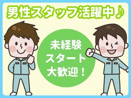 職場環境 【従業員構成】 《活躍中のスタッフは?》 主夫・主婦活躍中!ミドル・中高年も活躍中! 10代,20代,30代,40代,50代の方や パート,アルバイト,正社員からの転職者も活躍中! 《スタッフの前職は?》 一般事務,データ入力,コールセンター, コンビニ・スーパーなどの販売職, カフェ,受付などの接客業, 清掃,仕分け,軽作業, 倉庫内作業, ピッキング,物流倉庫内作業, フォークリフトオペレーターなど,様々! 【職場の雰囲気】 落ち着いた職場 立ち仕事