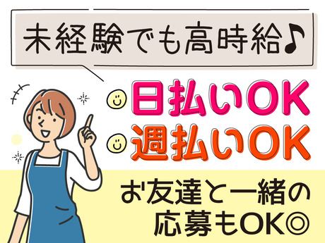 仕事内容 【覚えること少なめ♪】配送先別に商品を仕分けるシンプル作業! \ 未経験・無資格でも高時給1230円! / 有名なスイーツ店の商品を扱う倉庫内で アイスやシュークリームなどのお菓子が入った 箱を出荷先ごとに仕分ける軽作業です。 箱には商品名が書いてあるし、 何をどこに入れたらいいか 丁寧に指示がもらえるから 初日ですぐにお仕事を覚えられます! 仕分け・箱詰め・シール貼りなどの 倉庫内作業のお仕事が初めてという方も大歓迎! もちろん分からないことは気軽に質問してくださいね! 【日勤×週3日~】家事・子育てとの両立◎日数・曜日も気軽に相談OK ■■うれしいメリットがいっぱい!■■ ◎日勤のみで時給1230円 ◎週3日~働く日数が選べます ◎お友達と一緒の応募もOK ◎お給料は日払い・週払い制度あり 残業をお願いすることもありますが その時間帯の勤務は 残業手当がつくのでさらに時給アップ! ■ネストライブが働きやすさをしっかりサポート♪ ★交通費支給 ―>遠距離からの通勤も安心◎ ★日払いOK・週払いOK ―>「今月は出費が多くてピンチ!」なんて時も安心◎ ★事前の職場見学もOK ―>気になることをスッキリ解決してから就業できます! ■【ポイント還元】でモチベーションもアップ! \ 働く時間が、あなたのご褒美に! / 皆さんの頑張りをカタチにしてお返しできればという想いから 勤務時間に応じてポイントがもらえる 福利厚生サービス「giftree Benefit」を導入! 通常勤務はもちろん、残業や休日出勤も含めて 1時間勤務あたり5ポイントを進呈します。 貯まったポイントはコンビニやカフェ、飲食店、 ECサイトなど幅広いサービスでご利用が可能です! お好きなタイミングで頑張る自分にご褒美を♪(*'ω'*)ノ ※利用規定あり。詳細はスタート時に説明いたします