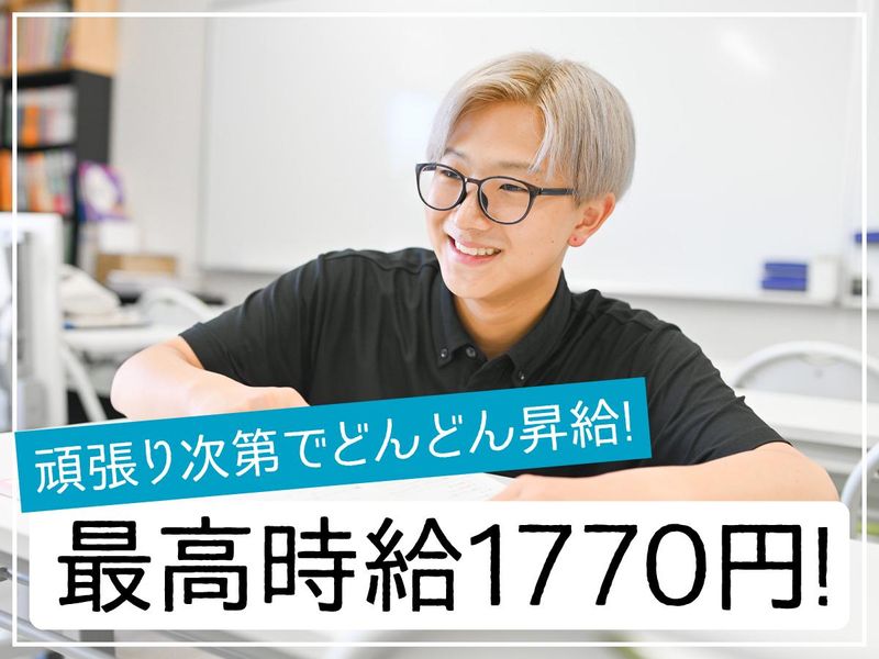 仕事内容 *最高時給1770円! *髪型・髪色・ネイル自由! *英語・数学のみ等、得意科目だけでもOK! *週1日~OK!学業もプライベートも充実! ―――――――――――――――――――― 【具体的な仕事内容】 小・中学生の個別指導 ・中学生は1:2~3の個別指導 ・小学生は少人数授業or1:2~3の個別指導 ―――――――――――――――――――― 【未経験大歓迎!】 既存スタッフの90%が未経験スタート。丁寧な研修がありますのででご安心ください。 頑張りはしっかり評価し、給与に還元します。 1コマ「2360円」(時給換算1770円)にUPしたスタッフもいます! 担当の生徒は固定のため、成長レベルを把握しやすくやりがいも感じられます! 中には「苦手だった数学の点数が上がった。先生のおかげ!ありがとう!」 といった嬉しいエピソードも。 ―――――――――――――――――――― 【社会で役立つ能力や人柄が身につきます】 情報をまとめる力や人前でわかりやすく話す力が身につき、 指導レベルによってランクがつくため就活時の自己PRにも最適 また、いい印象を持ってもらうコツや「シゴデキ術」など、 どんな仕事をする上でも役立つスキルと人柄が磨けます。 さらに、スタッフに延べ3,000人以上を担当したキャリアコンサルタント(国家資格) がいるため、就活や今後のキャリア相談にも応じてもらえます
