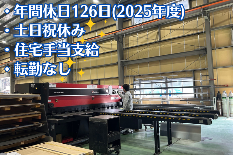 ■アピールメッセージ \長く続けやすい環境/ ・工場勤務でも年間休日なんと126日(2025年度)! ・夏季、年末年始など長期休暇あり! ・配偶者がいる場合、扶養問わず月1万円の家族手当を支給! ・20~30代の若手活躍中!女性スタッフも活躍中です! \時間有休の取得可能/ 年5回まで、1時間単位で有給休暇の取得が可能です! ちょっとした用事がある日はとても助かります。 \決算賞与/ 年2回の賞与とは別に、業績に応じて決算賞与が支給される場合があります! \転勤なし/ 家庭のある方や転居が難しい方も、腰を据えて長く働くことができます!