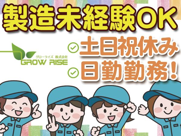 【未経験OK】製造業初めてさんもOK!!日勤のみで土日祝休みプライベートも充実♪