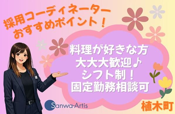 仕事内容 あなたのライフスタイルにあわせた お仕事みつけませんか 【求人コーディネーターよりごあいさつ】 サンワの求人をご覧いただき、ありがとうございます。 私たちは『共に学び、共に生長する』という企業理念のもと、すべての方により添うことを大切にしています。 本日は最後までみていただけるとうれしいです。 【採用コーディネーターより】 ⭐お料理が好きな方大歓迎!! ⭐資格・経験・学歴不問!! ⭐調理師免許をお持ちの方や 調理の実務経験がある方は優遇◎ ⭐残業なしでプライベートと 両立できる♪ ⭐シフト固定勤務も可能◎ ⭐主婦・主夫さんが活躍中!! ✅仕事内容  ̄ ̄ ̄ ̄ ̄ ̄ ̄ ̄ ̄ ̄ ̄ ̄ ̄ ̄ ̄ ̄ ̄ ̄ 施設内で調理業務全般を お願いします♪ ・食材のカット ・調理、味付け ・お皿に盛り付け ・食事の配膳 ・お皿の洗浄 などをお任せします。 3パターンのシフト制◎ Aの固定勤務も可能です! A)6:00~15:00 B)9:00~18:00 C)10:30~19:30 先輩スタッフがやさしく丁寧に教えます♪ 安心してお仕事がスタートできますよ◎ ✅ おすすめポイント✨  ̄ ̄ ̄ ̄ ̄ ̄ ̄ ̄ ̄ ̄ ̄ ̄ ̄ ̄ ̄ ̄ ̄ ̄ ⭐残業なし ⭐経験者大歓迎 ⭐調理師免許ありの方大歓迎 ⭐料理が好きな方大歓迎 ⭐社会保険完備(即日加入OK) ⭐冷暖房完備 ⭐20代~50代スタッフ活躍中 ⭐利用者さんに感謝されるお仕事♪ ⭐資格、スキル不問 ⭐オンライン面談随時受付中◎ ◎お家で面談できます♪ ✅ 職場見学OK!  ̄ ̄ ̄ ̄ ̄ ̄ ̄ ̄ ̄ ̄ ̄ ̄ ̄ ̄ ̄ ̄ ̄ ̄ 「職場の中を見てみたい(゜゜)」 「仕事内容の想像がつかない...」 少しでも興味を持っていただいた方は 私たちと一緒に職場見学に行きませんか? ✅ 他にも多業種のスタッフ募集中◎  ̄ ̄ ̄ ̄ ̄ ̄ ̄ ̄ ̄ ̄ ̄ ̄ ̄ ̄ ̄ ̄ ̄ ̄ 是非、お仕事のご相談だけでも お気軽にご連絡ください☆
