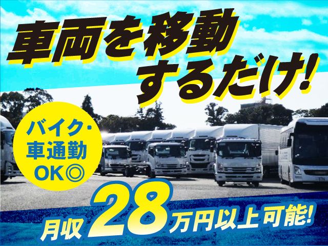 仕事内容 仮装メーカープール内にて車両を移動するだけ 荷物の積み下ろしの作業なし ・月収28万円以上可能! ・残業代別途支給!稼げます! ・長距離運転なし ・社会保険完備で安心! ・車通勤可能で交通費もしっかり支給! 中型免許・大型免許を活かして働きませんか? ブランクのある方や 車の運転が好きな方、 ドライバー経験がある方は スキルを活かして活躍できます! <簡単なお仕事の流れ> 某仮装メーカープール内にて車両移動 ↓ これだけ 丁寧に教えるのでなんでも聞いてくださいね 荷物の積み降ろし等の作業も一切ありません! 他職種への変更も可能です。<<ここが魅力!!ポイントをご紹介>> 長期安定企業 創立50年以上の安定企業です! 年齢・ブランク不問! 幅広い世代の方大歓迎! ブランクあるから・・・.という方も しっかりと丁寧に教えるので安心して働けます! 重たい荷物の積み下ろしなどは一切ないので ミドル・シニアなど中高年の幅広い年齢層の方も活躍中! <<志望動機は何でもOK!>> 他業種から転職した方も活躍しています。 ・もっとがっつり稼ぎたいフリーターの方 ・運転が好きな方 ・車が好きな方 ・新しい仕事にチャレンジしたい方 ・地元で働きたい方 などなど ≪働きやすい環境です≫ ・社会保険完備で安心! ・各種長期休みも充実でプライベートと両立! ・車通勤可能で交通費もしっかり支給! ・大手企業内の職場で長期安定 ※本社(上野)にて2次面接あり(交通費支給) まずはお気軽にお問い合わせください。