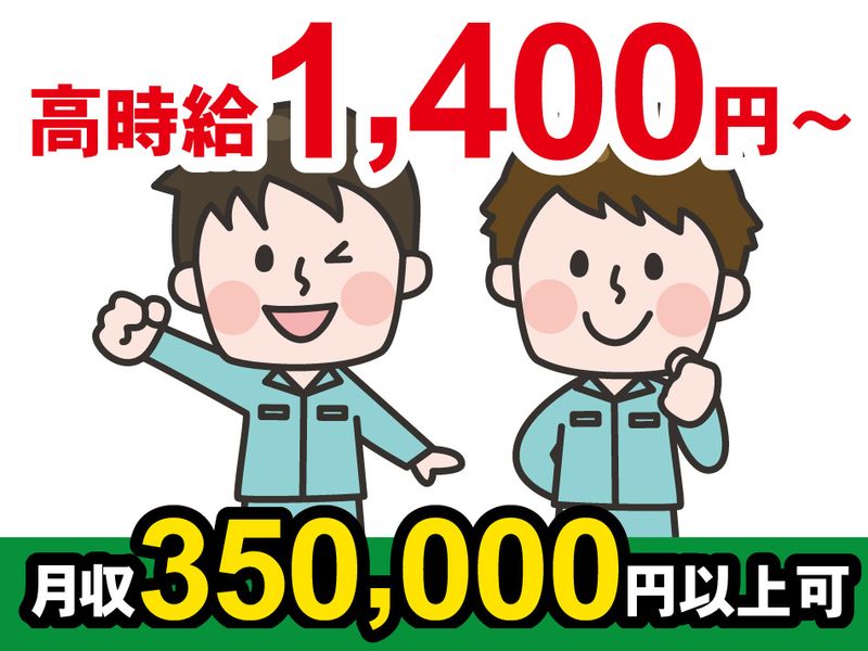 時給1,400円以上 給与 時給1,400円〜 4勤3休手当/1日あたり950円 皆勤手当/10,000円 月収例/35万円以上可
