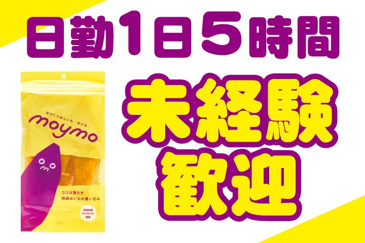 仕事内容 \日勤のみ!土日休み!週3日のパート募集/ メディアでも話題の干し芋を年間通して生産中! ひたちなか市の特産品「干し芋」を つくる食品製造のお仕事です。 さつまいもの皮むきや包装など カンタン作業のため未経験スタートでも安心! (食品製造スタッフ パートのポイント) 〇土日休み 〇週3日からOK 〇日勤のみ!短時間の5時間勤務 〇未経験OK 〇ブランクOK 〇昇給あり 〇社割あり (募集職種) 食品製造スタッフ パート (詳しくは) ・さつまいもの皮むき ・包装など 食品製造工場で干し芋の 生産加工を行って頂きます。 蒸かしたさつまいもの皮をむいたり、 スライサーで切ったり、出来上がった 干し芋の包装などをお願いします。 (食品製造スタッフ パートの勤務について) 日勤のみ、1日5時間の短時間パートです。 土日休み、週3日から勤務OK! 家庭や子育てと両立しながらでも 働きやすいパート勤務です。 (食品製造スタッフ パートはこんな方におすすめ) 〇未経験から始めたいパート・アルバイト 〇土日休み!家庭や子育てと両立したい主婦パート 〇短時間で働きたい中高年パート 〇フルタイムで安定したいフリーターアルバイト 〇食品製造デビューしたいパート・アルバイト TEL 0120-99-2233 ご質問等はお気軽にお問合せください。
